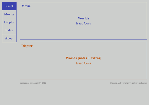 This is everything.elliott.computer. It was last updated on April 12, 2026 and contains 166 projects. This site is running on Elliott's Computer. Browse other sites on the computer at home.elliott.computer.