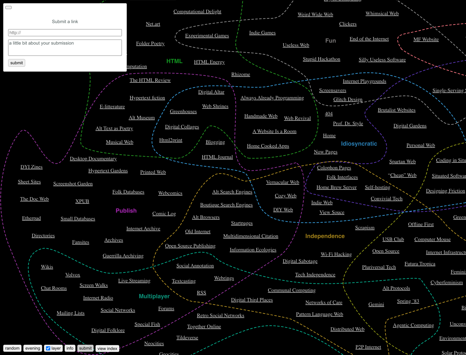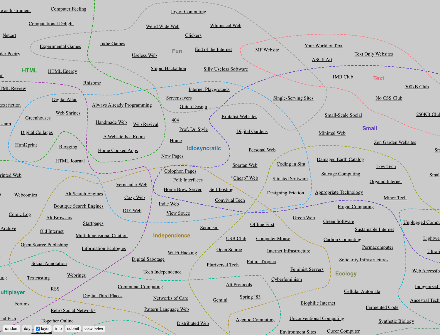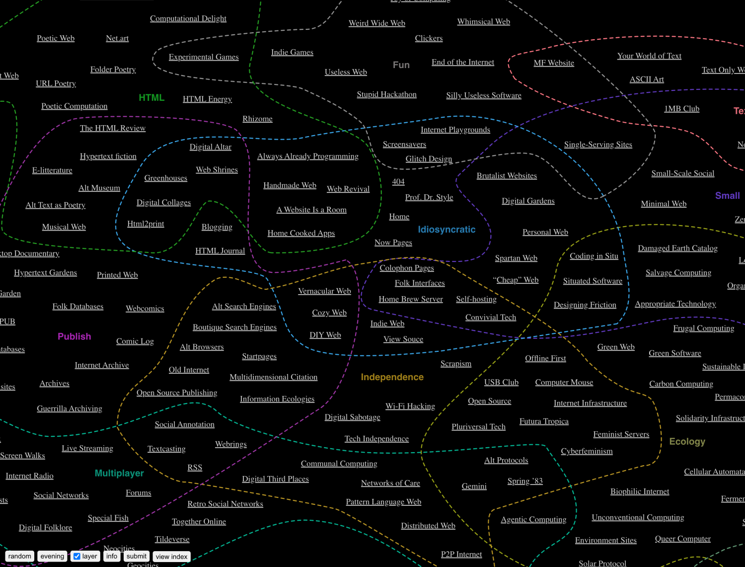 "I made a map of the Internet. It is incomplete. You won’t find links to social media sites, big corporations or advertisement renderings. In fact, most of the Internet is missing from the map. Hence, it is more accurate to describe the map as My Internet or the Naive Internet Universe." – Kristoffer Tjalve