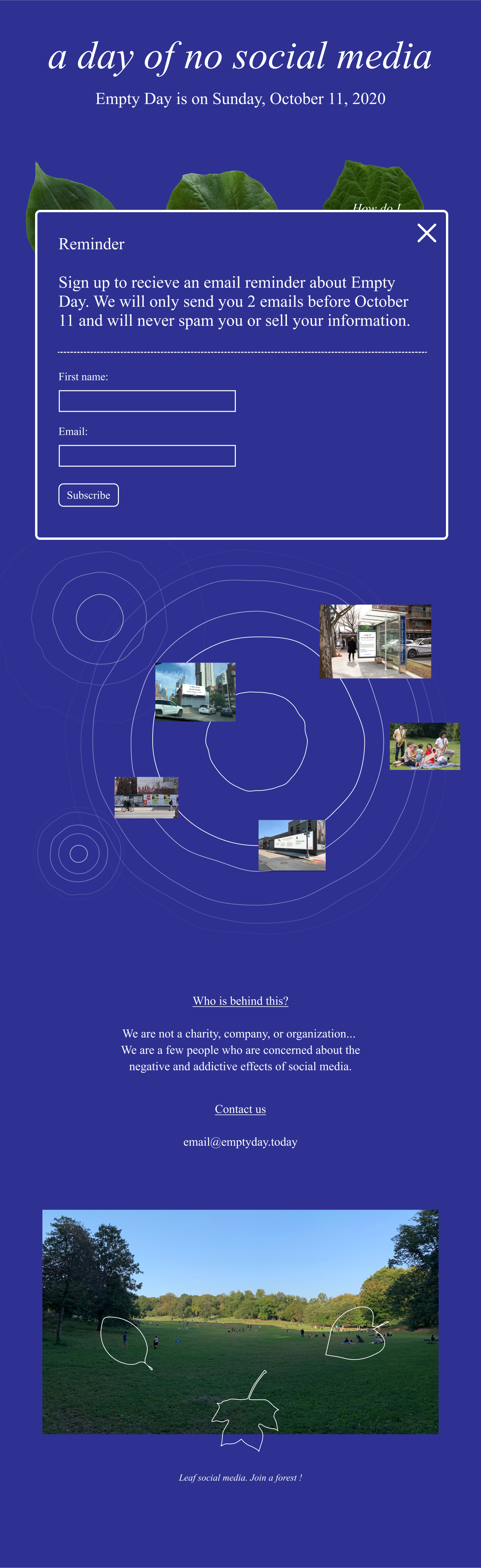 Website for Empty Day 2020 (a day of no social media). In collaboration with Laurel Schwulst.