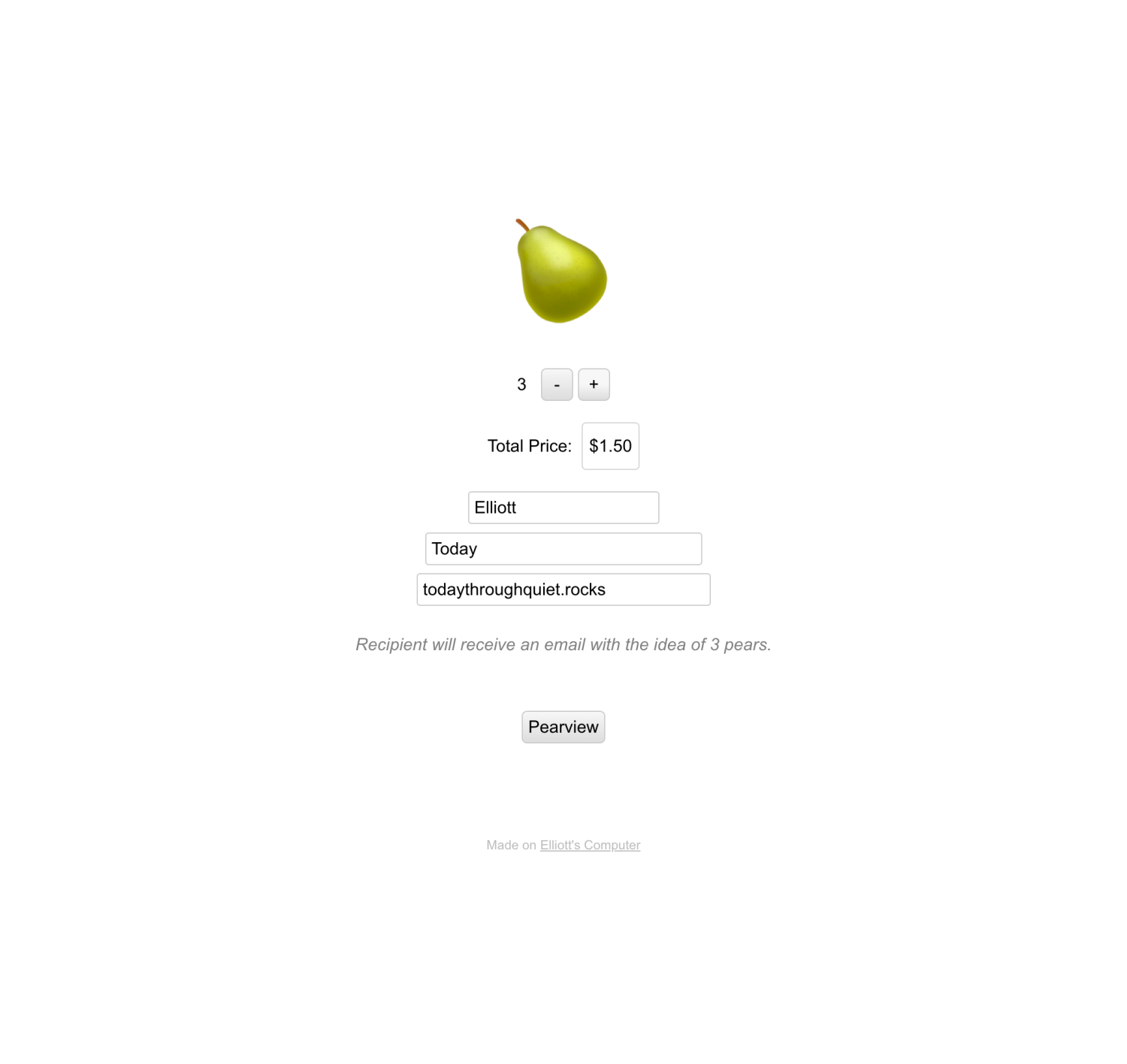A website to purchase and send the idea of a pear to a friend.