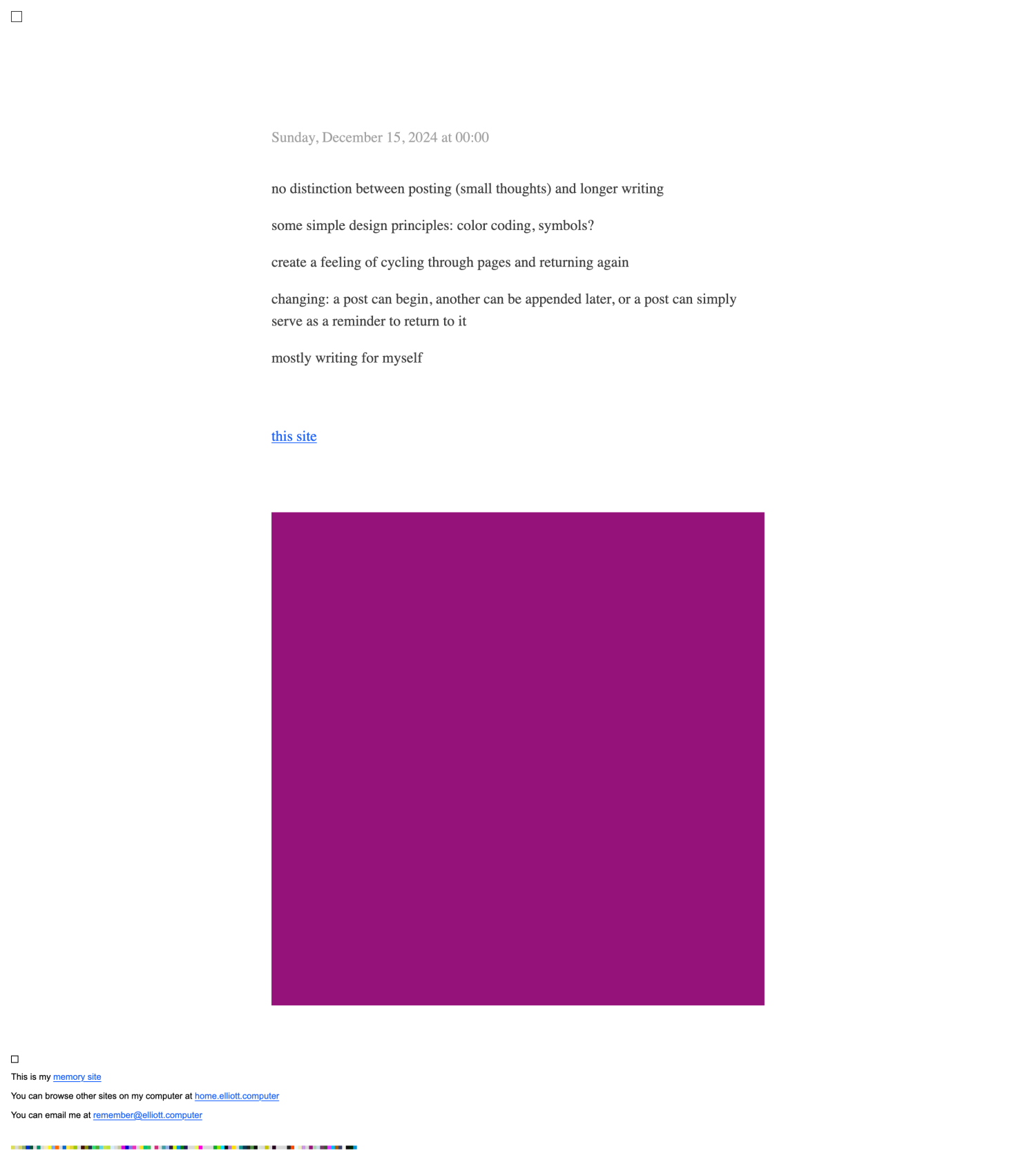 A memory site is mostly written for oneself, leaning more towards a diary than a blog. A personal site for documenting experiences, memories, ideas, and realizations.
