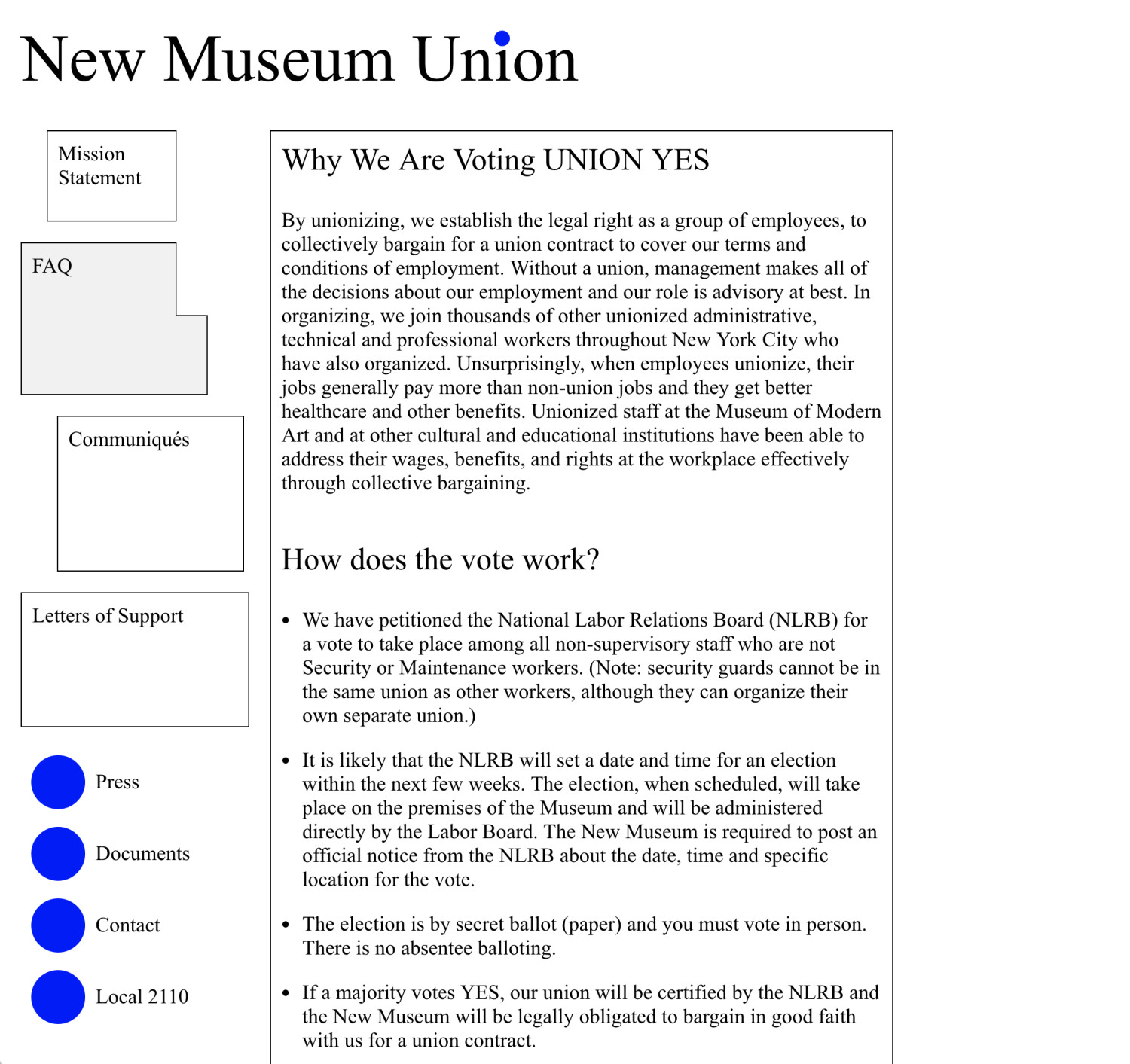 A website and resource for the New Museum Union. Circular logo by Laura Coombs.