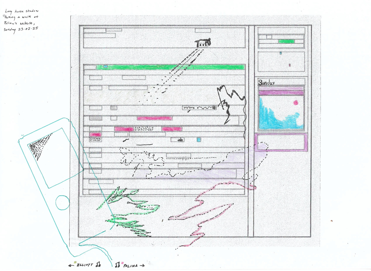 Tracings of the elements from polinsski.digitale-grafik.com (turquoise pen) and home.elliott.computer (magenta pen)