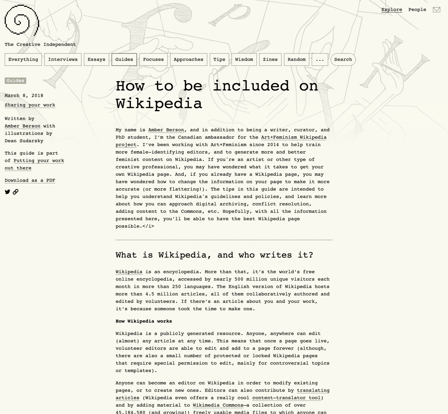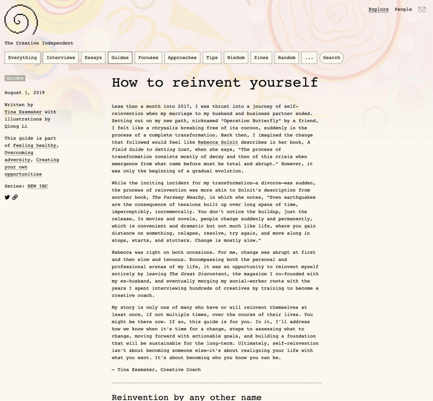 Design and development of core aspects of The Creative Independent website to make it more aligned with its mission of being a resource for creatives. Design assistance from Mikki Janower.
